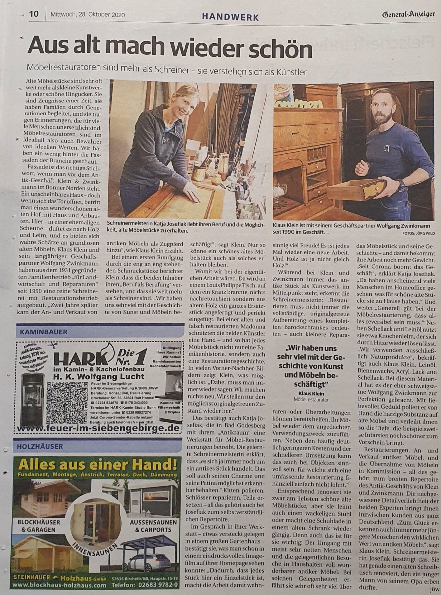 Aufgrund des netten Interview mit Herrn Wild vom Generalanzeiger in Bonn wurde mein AntikRaum und ich im Handwerkerteil der Ausgabe vom 28.10.2020 vorgestellt.